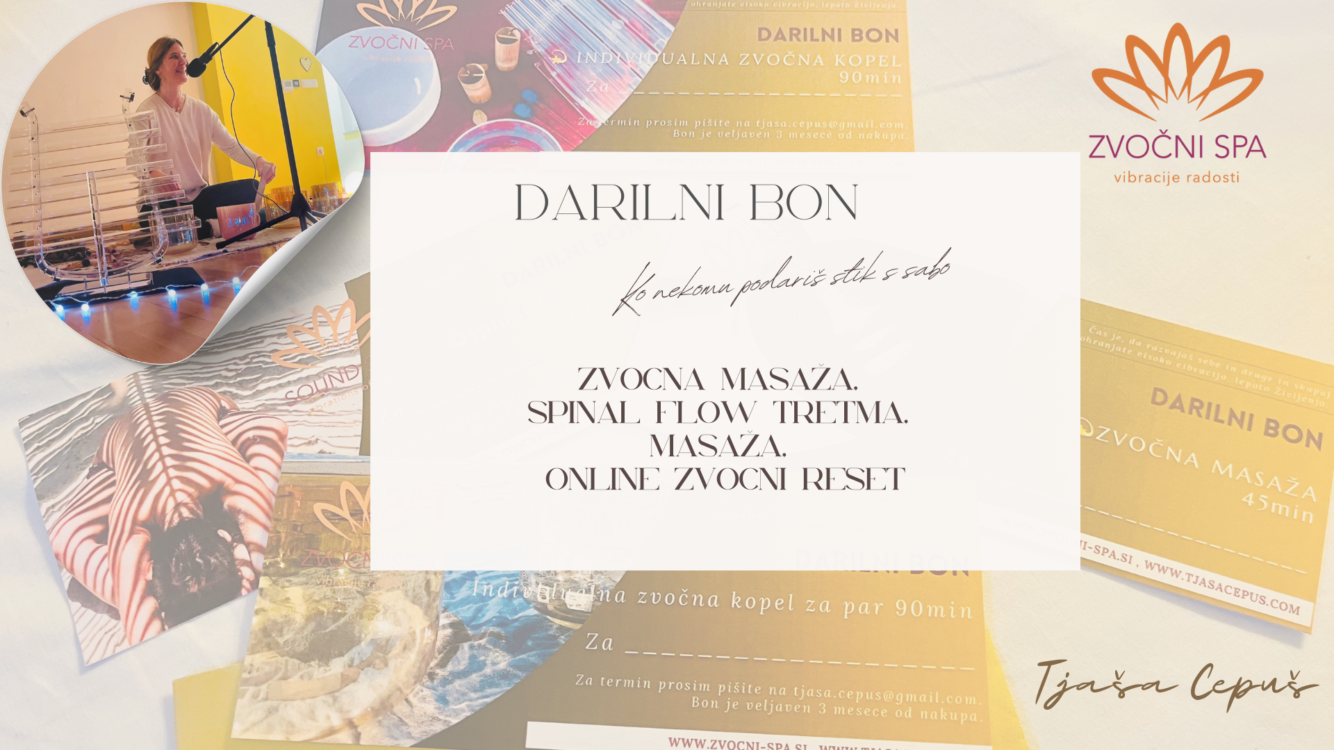 Darilni boni. Ko podariš nežen trenutek sprostitve in povezave s seboj, za dobro počutje, zdravje in notranji mir.