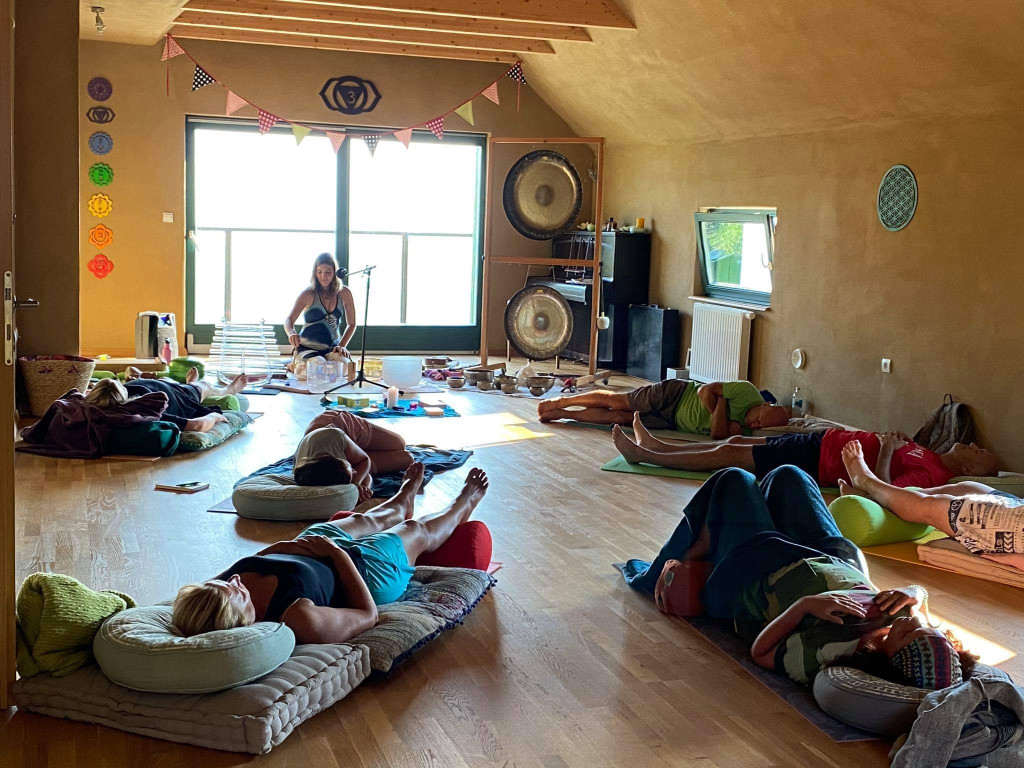 Retreat je odpiranje naravnem načinu življenja, v skladu z vašim notranjim vodstvom, telesom, časovno komponento in povezovanjem z naravo/okoljem. Kombiniramo različne vaje dihanja, prepuščamo se zvočnim frekvencam kristalnih posod in instrumentov, vodnim tehnikam (aqua flow) in vokalom (tonning), vmes pa se sproščamo, uživamo naravo in njene lepote.